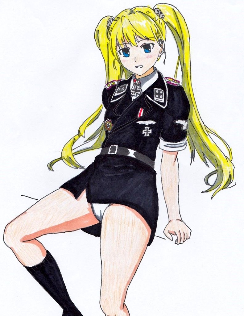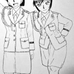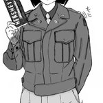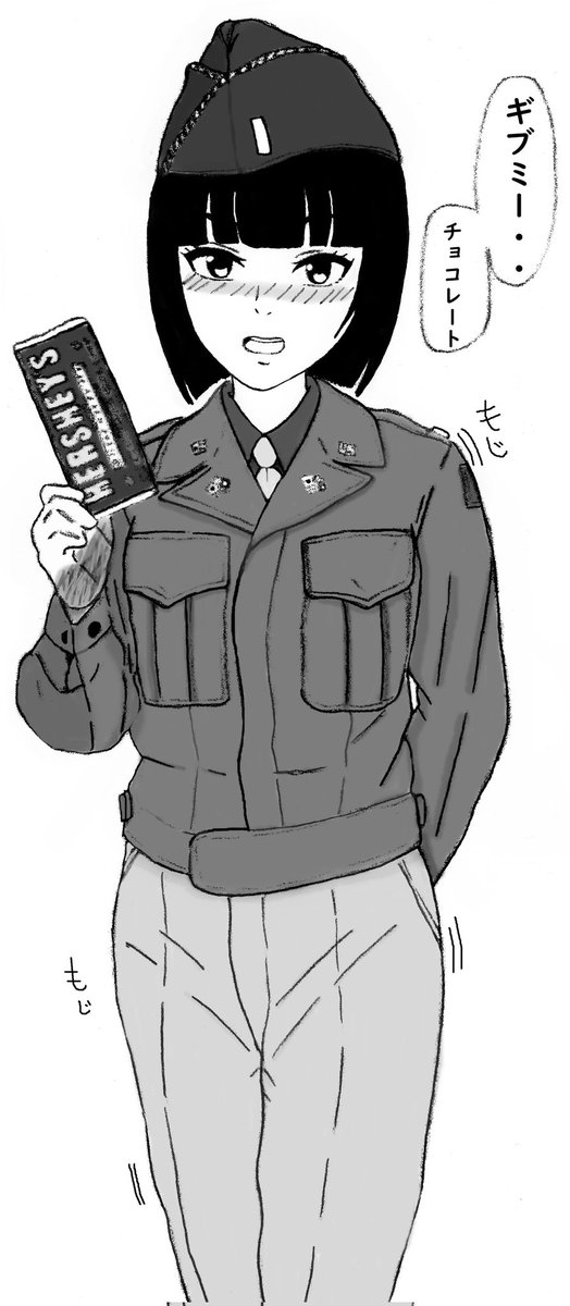 2日遅れのバレンタインイラスト 今年はヒロ子と日系アメリカ兵のジョージ(初登場) (前回は楠木先生のジャン・ハリー伍長とウチのヒロ子) 夫のアイクジャケット着て チョコを渡す妻(謎シュチュ) #バレンタインイラスト #バレンタイン
