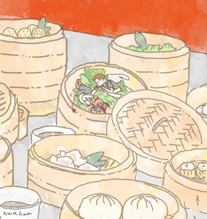 遅くなりましたが、リクエストいただいて「食べ物とキャラクターを組み合わせたイラスト」万で描きました。 ありがとうございました! #万聖街 #万圣街 #allsaintstreet