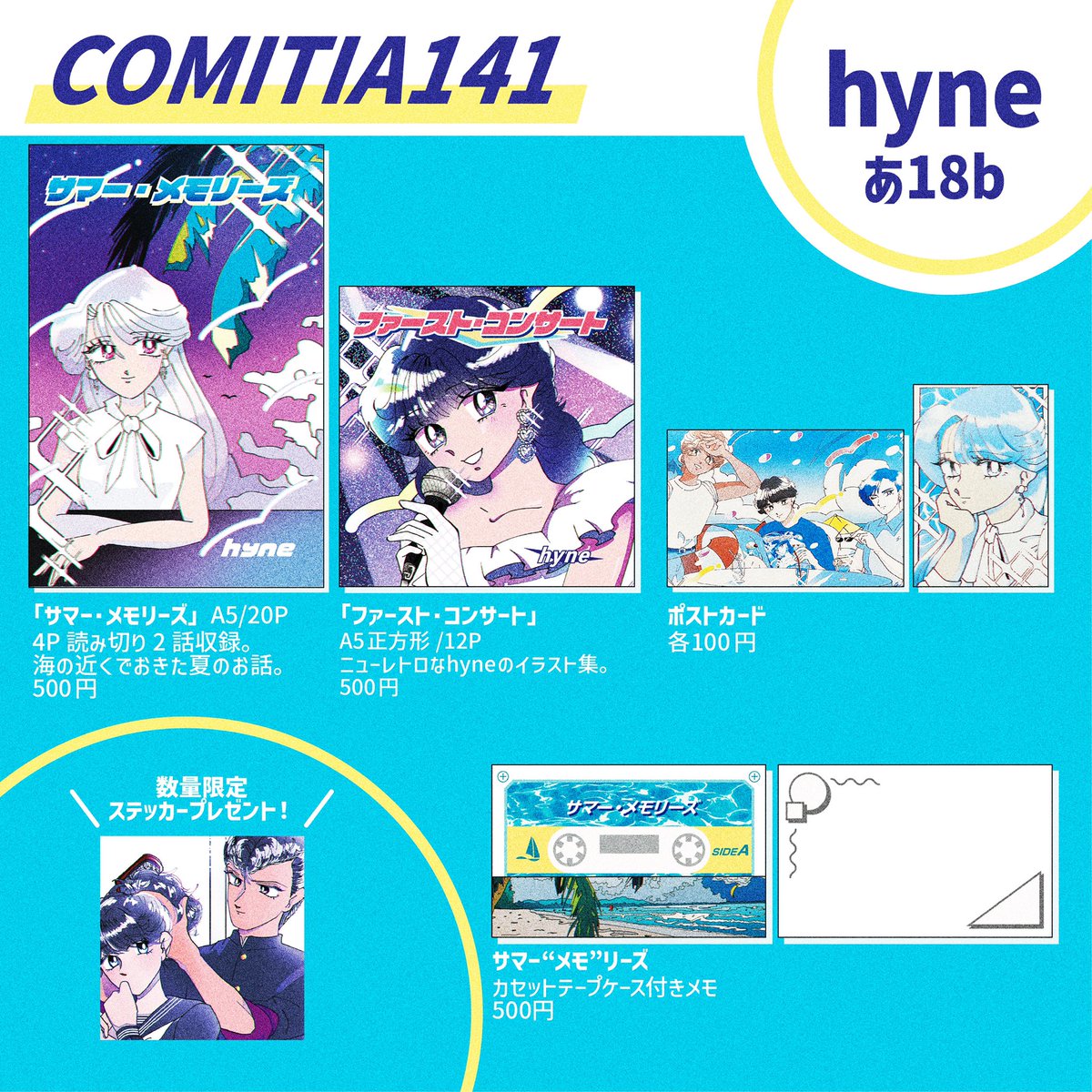 🏝COMITIA141🏝 hyneのお品書き ブースNo.【あ18b】 今回はCOMITIA初参加ということで、初めての漫画に挑戦してみました!海の近くでおきた夏のお話です🐚 テイクフリーのステッカーもあります。 どうぞよろしく🐧 #コミティアお品書き #コミティア141 #COMITIA141