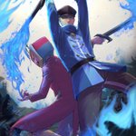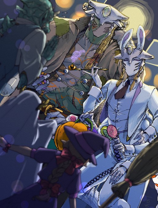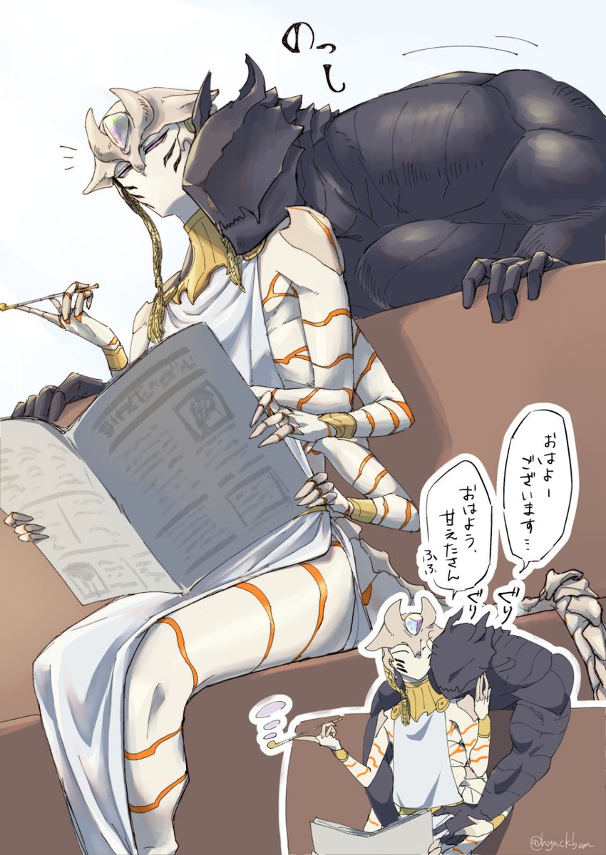 Skebでのご依頼にてまくらごみさん【@makuragomi】の創作キャラクターのジュビラさん(とユバンさん)を描かせていただきました! 人間と人外のバディはいいぞ! skeb.jp/@hyackban/work… #Skeb #Commission @skeb_jpより