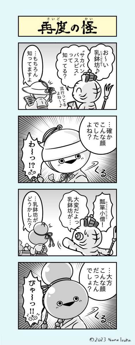8 33 #つれづれ4コマ なぜか続いたサカバン漫画🐟 #4コマ漫画 #妖怪 #栄螺鬼 #貝児 #サカバンバスピス twitter.com/hyakki2020/sta… 23/06/20 00:16