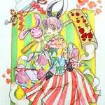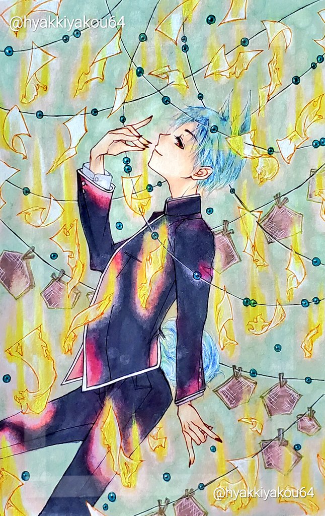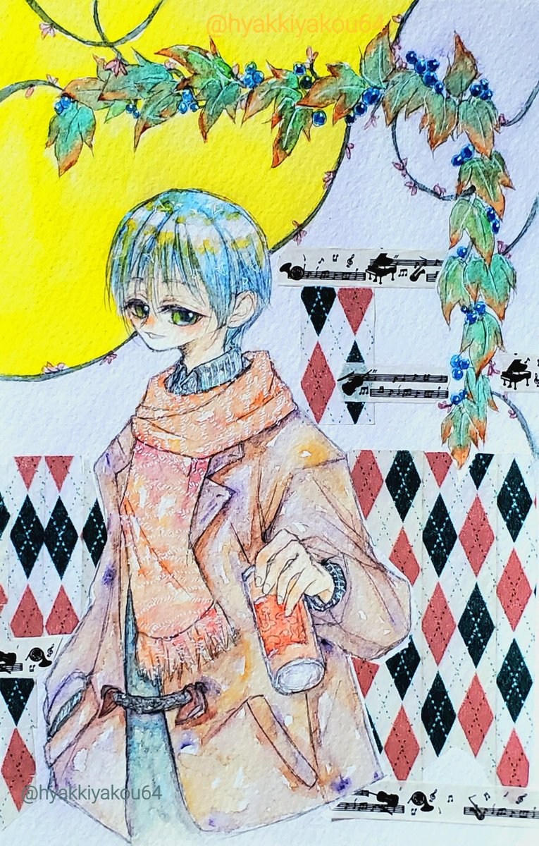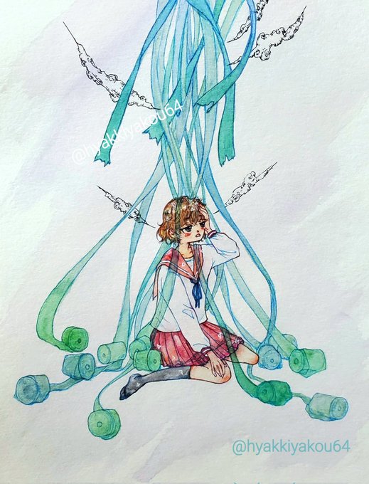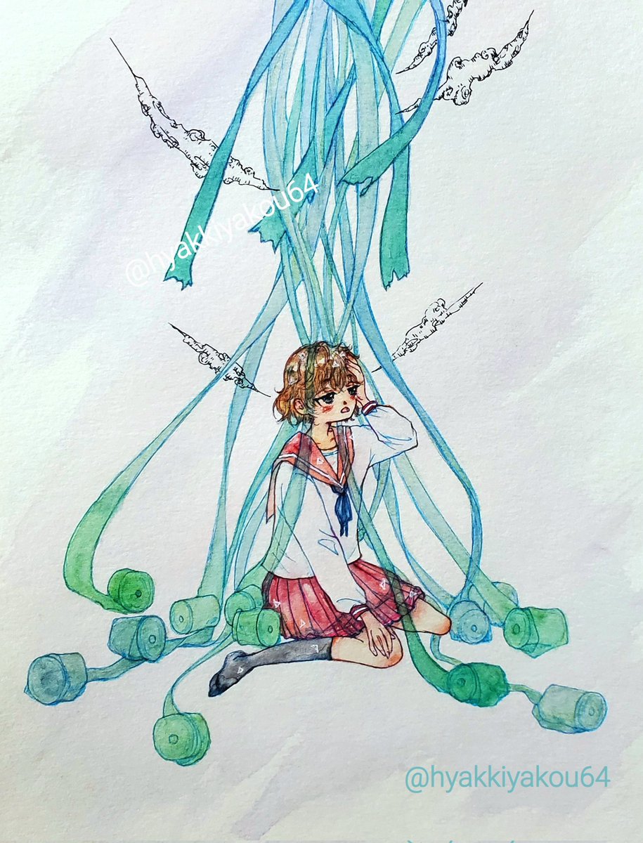 #今年も残りわずかなので今年一番伸びた絵を貼る 透明水彩とマスキングテープも使って作った作品 想像以上の方に見てもらえて「ほゎゎゎゎぉぉぉわぉ」と震えていた((😳))のを思い出す ((😳))