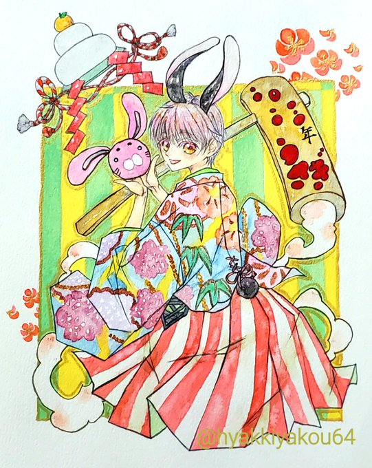 「🐇明けましておめでとうございます🎍」 #HappyNewYear2023 #年賀状イラスト 2023年 卯年 今年もよろしくお願いいたします🐰 (いつもよりキンキラ多めでお送りいたしております✨キラキラ~✨)