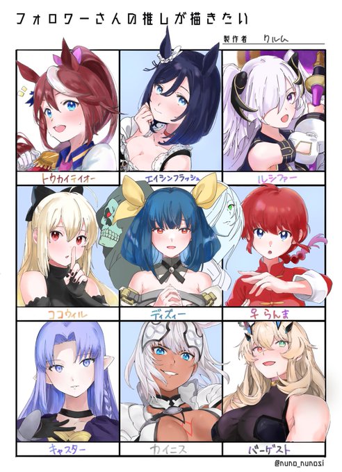 募集してから今日で1年経ったらしく…本当にすみませんでした😭そしてありがとうございました…!!!どのキャラも描いていてめちゃくちゃたのしかったです…!! #フォロワーさんの推しが描きたい