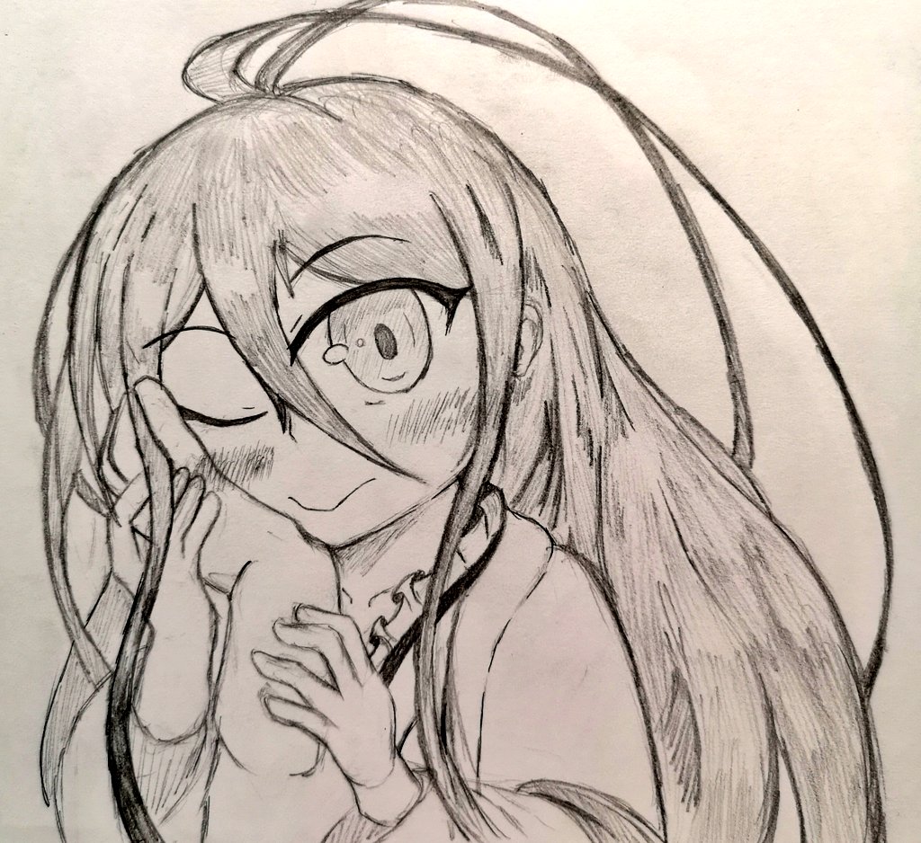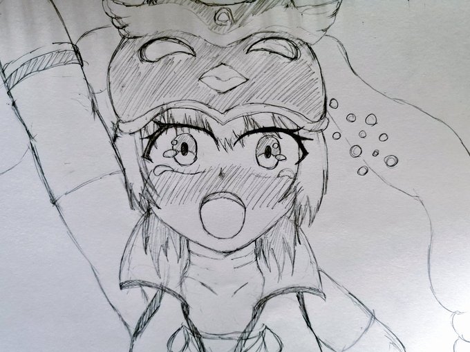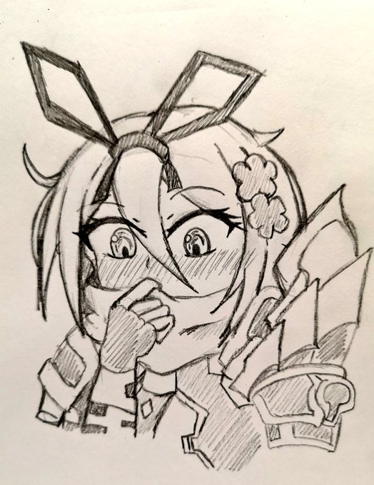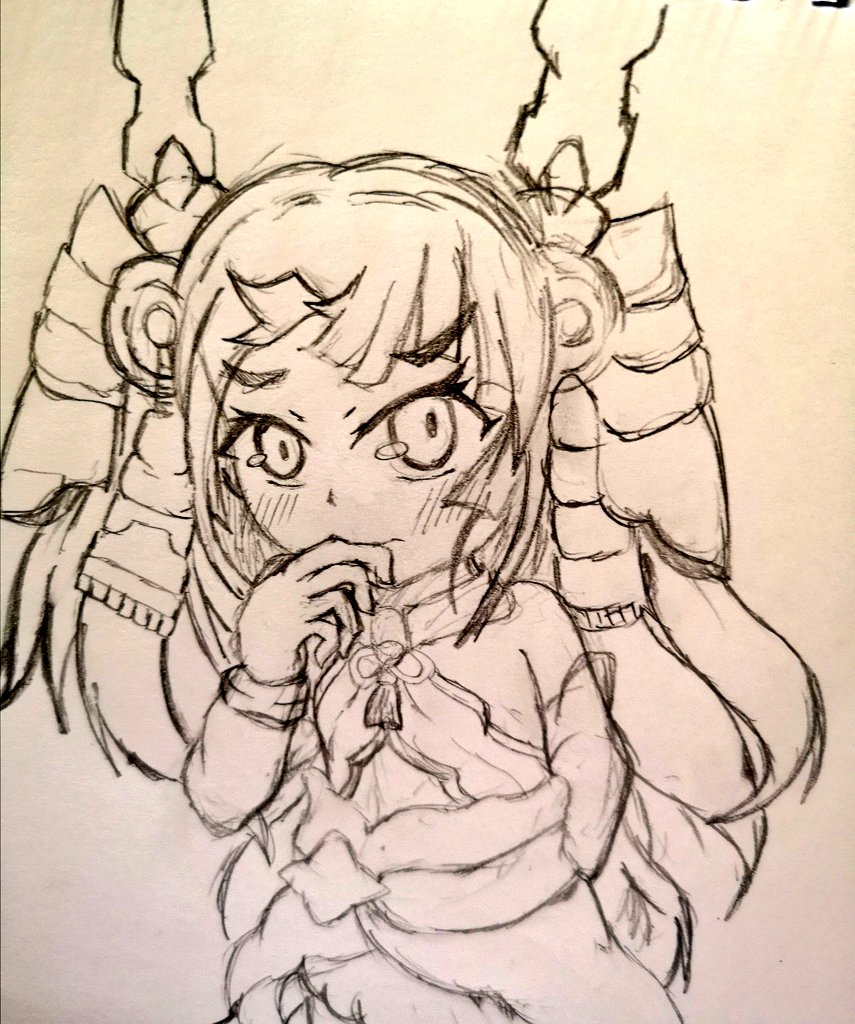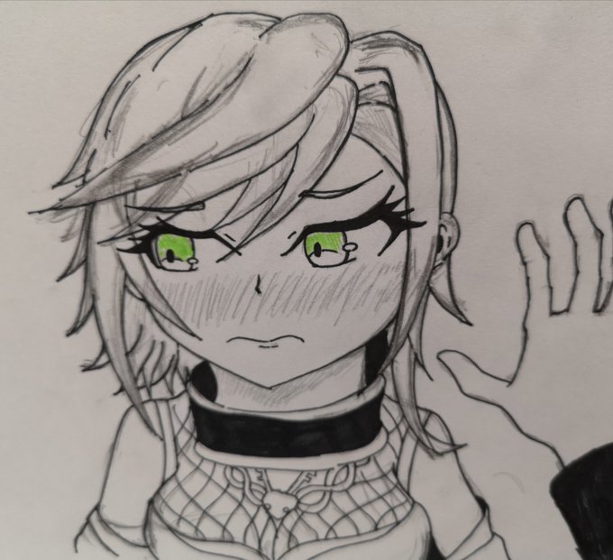 #天華百剣お絵かき部 大倶利伽羅ちゃんのストーリー見直してたので照れ顔を描きたくなった マフラーつけてる娘がこんな感じで口隠すの好きな訳よ 理由が不意打ちのキスとかだとなお良し 「チュッ)・・・主君!?///」