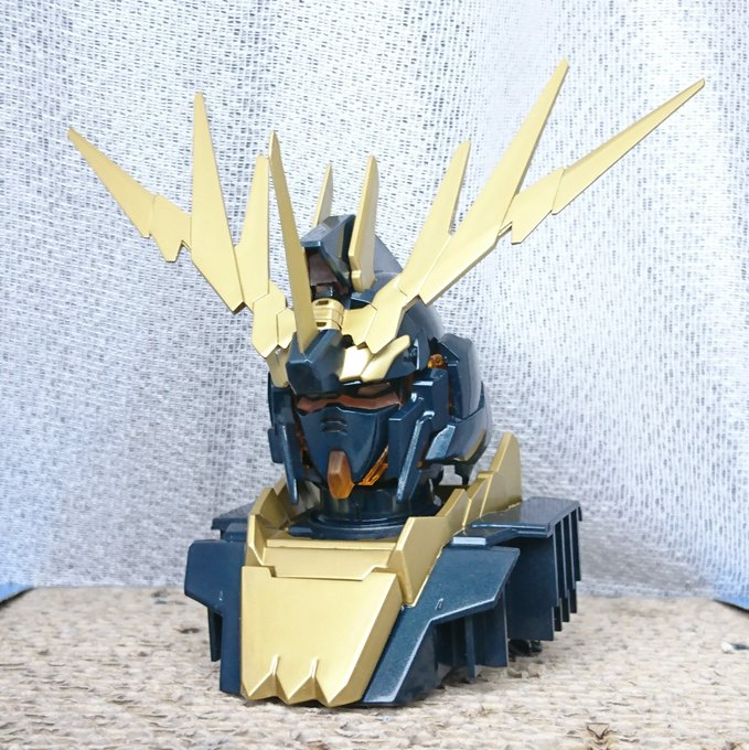 バンシィヘッドディスプレイ完成~! 中古で買ったバンシィにLEDが抜き忘れていたことから初めての電飾に挑戦してみたわけなんだけど 売った人の望んだものになっただろうか? 見てくれるといいなぁ #プラモデル #ガンプラ #ガンプラの画像貼るとRTされると聞いて