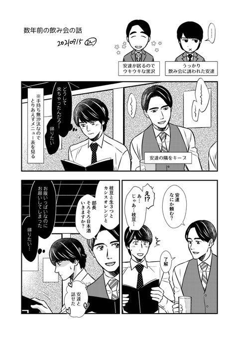 数年前の飲み会の漫画を描きました。 付き合う前の2人を描くの楽しい…🍺