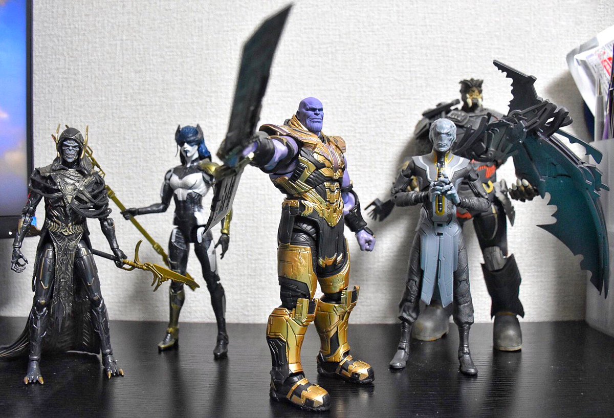 3 12 ブラックオーダー達とサノスと こうやってみると壮観やなぁ ブラックオーダーはコーヴァス以外手を加えてます プロキシマミッドナイトのアーマーシルバーにせな #アメトイカスタム #造って遊ぼ 21/01/17 22:37