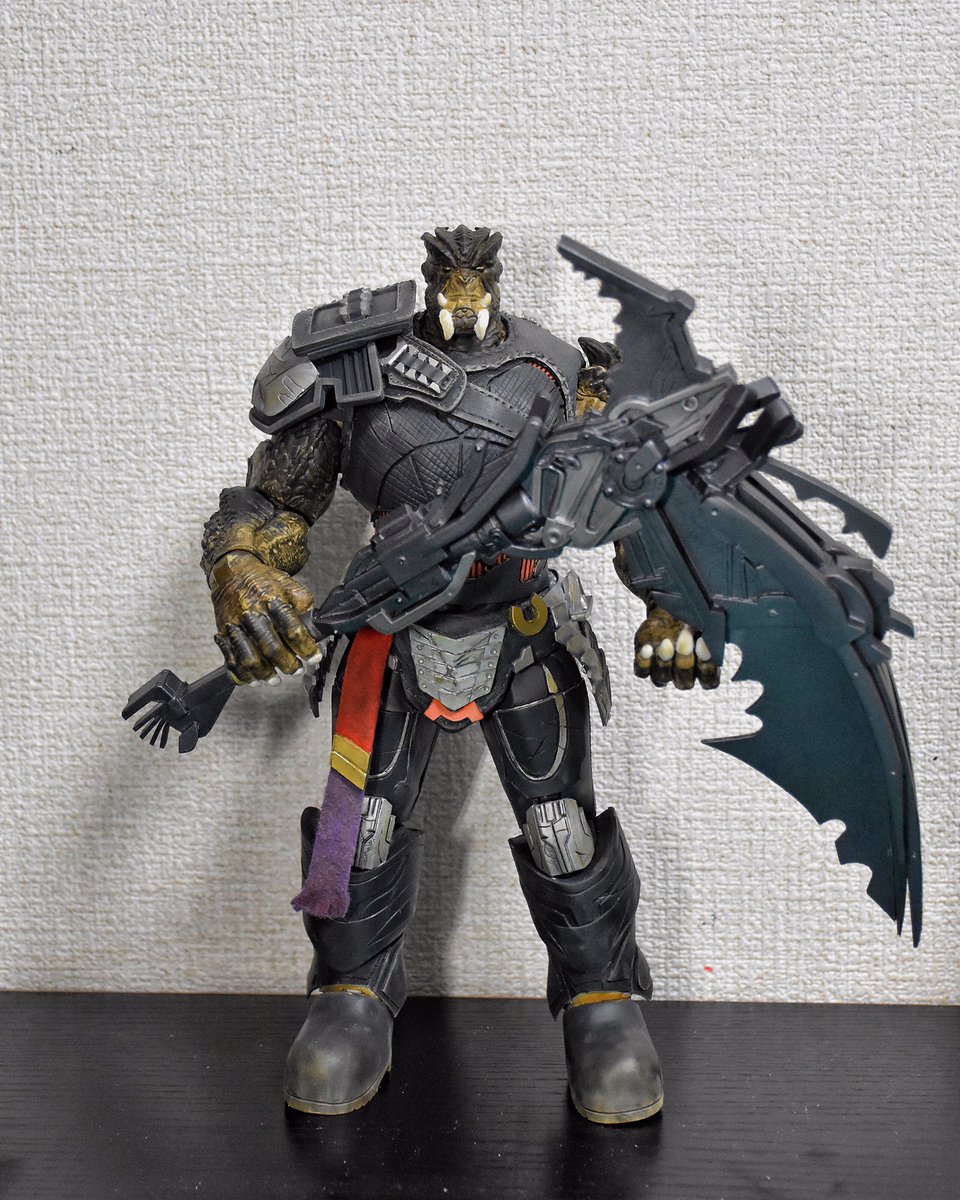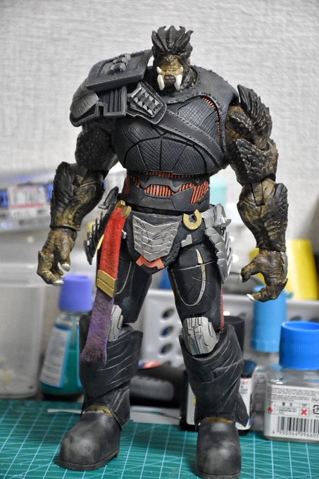 ボディの方も完成 あとは汚して腕を黒くしすぎたから調整してから艶消し 武器は一旦全部ガンメタで塗ってそこからマスキング地獄 今年中には間に合わないから諦めます… #造って遊ぼ #アメトイカスタム
