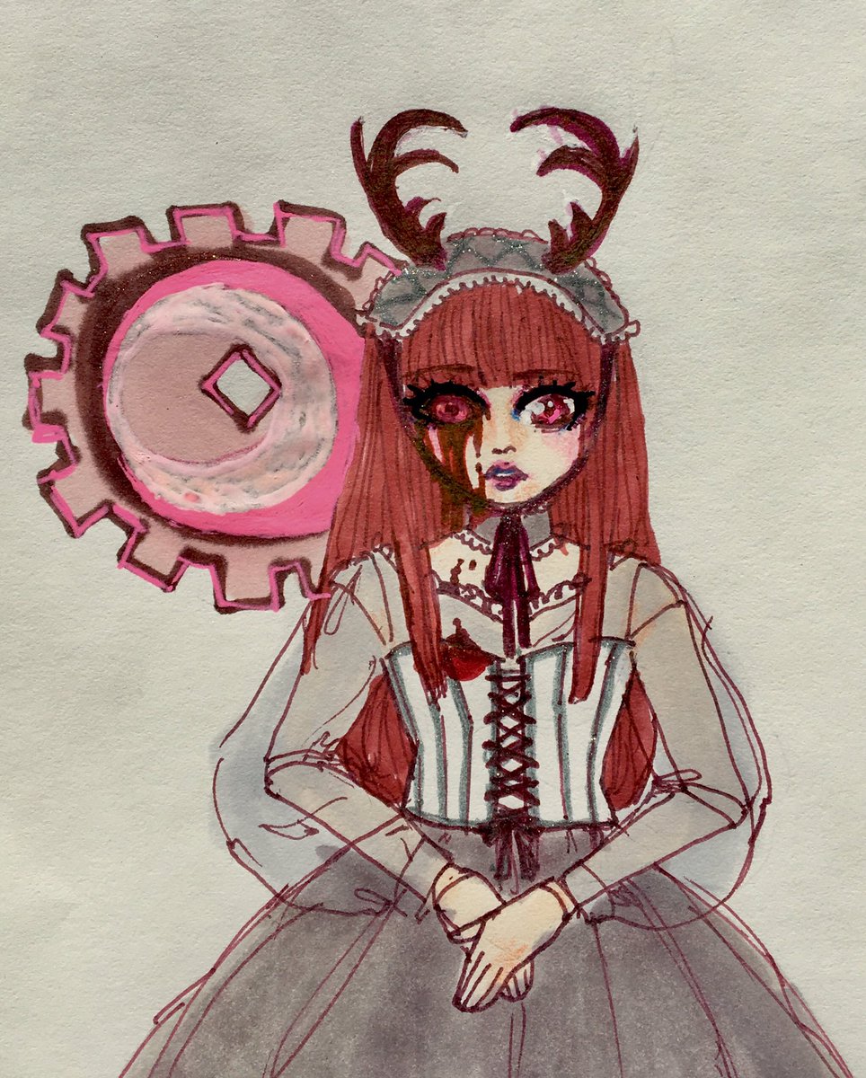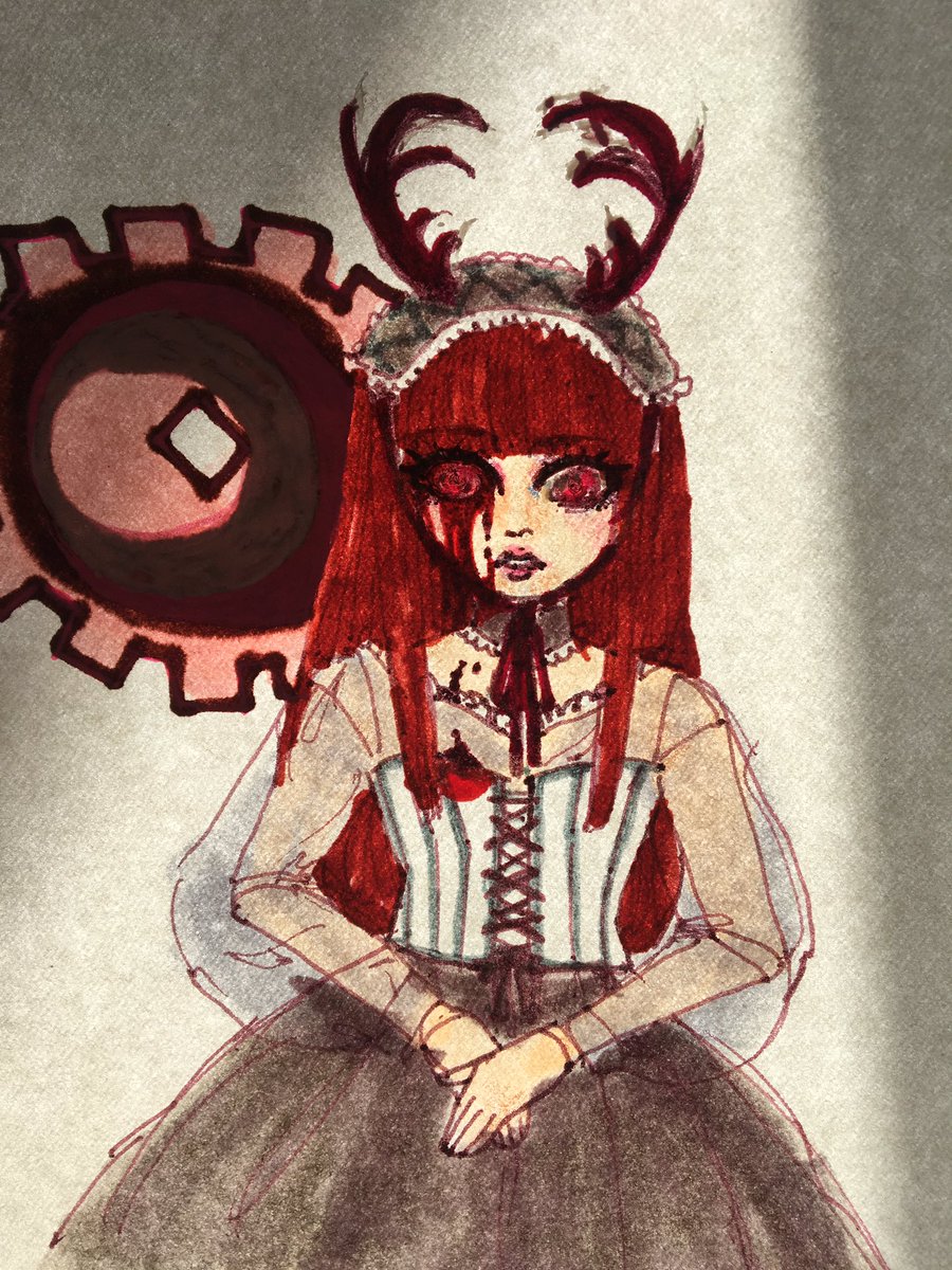 8 steampunk! Not happy with this but I think I achieved the lolita/bjd/bizenghast thing. Not full steampunk but... I tried ... Including picture with sunlight through the back lookin creepy #Orbitober2019 #loona #vivi #이달의소녀 #비비 #inktober