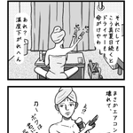 お題「お化け」とお題候補だった「ラブレター・かがみ・アイスクリーム・まなつ日・リモコン・エアコン・熱中症・ドライヤー」を入れて描きました タイトル『熱中症』 #ひょんコマ漫画 #四コマ漫画 #漫画 #漫画が読めるハッシュタグ #4コマまんが語り