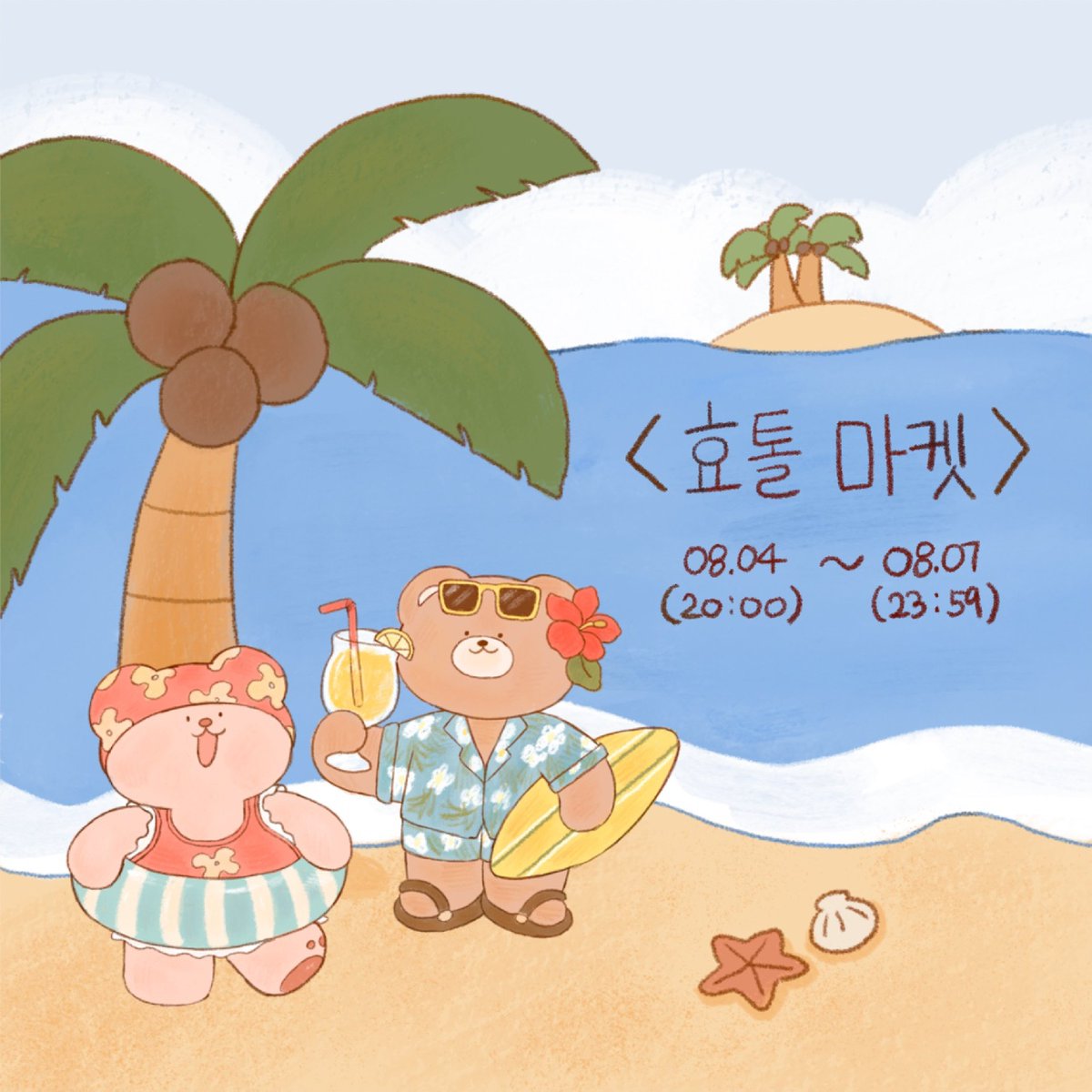 [RT 이벤트] 8월 4일부터 7일까지 여름 효톨 마켓을 오픈합니다!+!🏝 rt 하신분 중 한분을 추첨하여 신상이 포함된 2만원 상당 랜덤팩을 보내드립니다🤩✨️ 많은 관심 부탁드립니다 - 이벤트 당첨 발표 : 8월 8일 자정 form.twenty.style/v1/Hyoddun_s/1…
