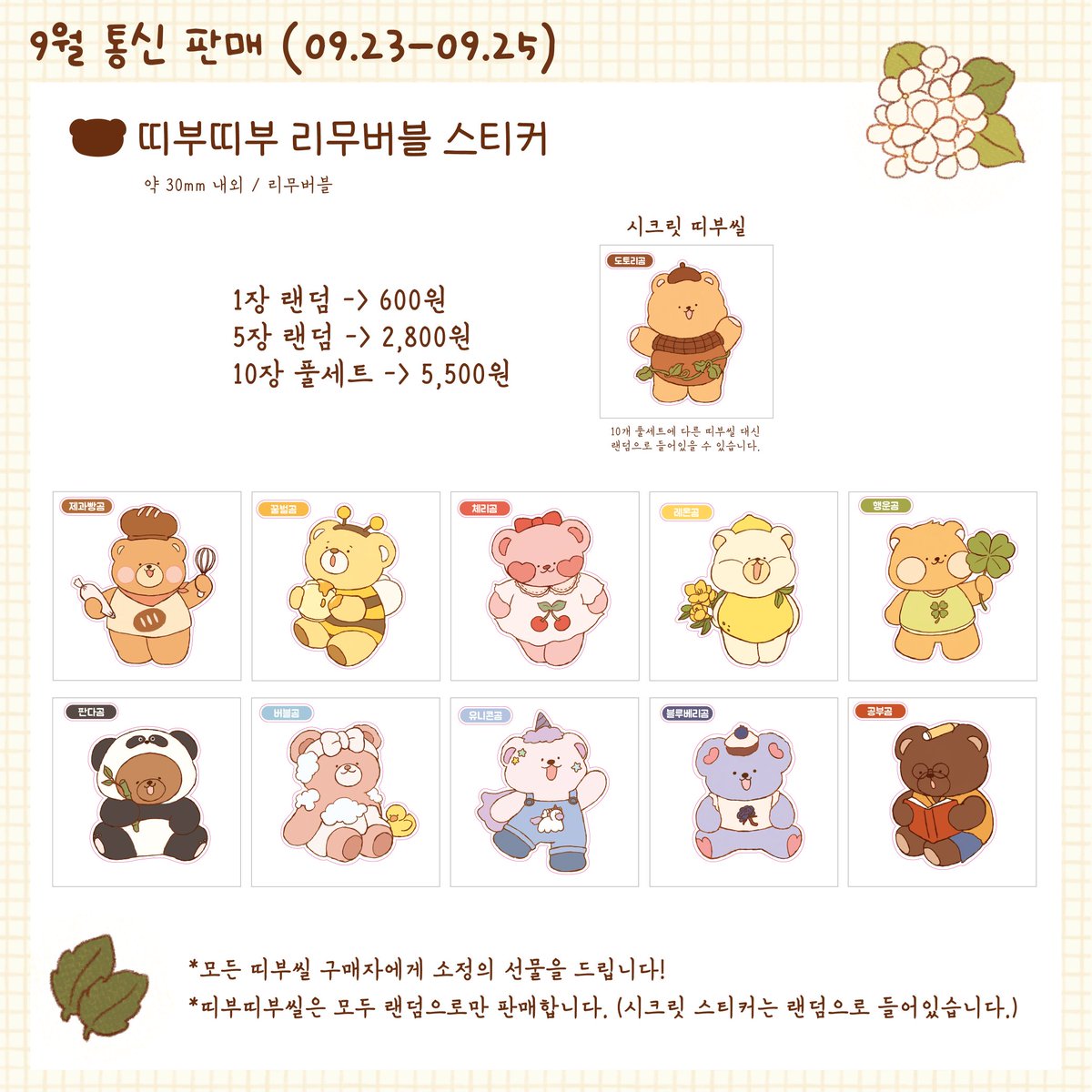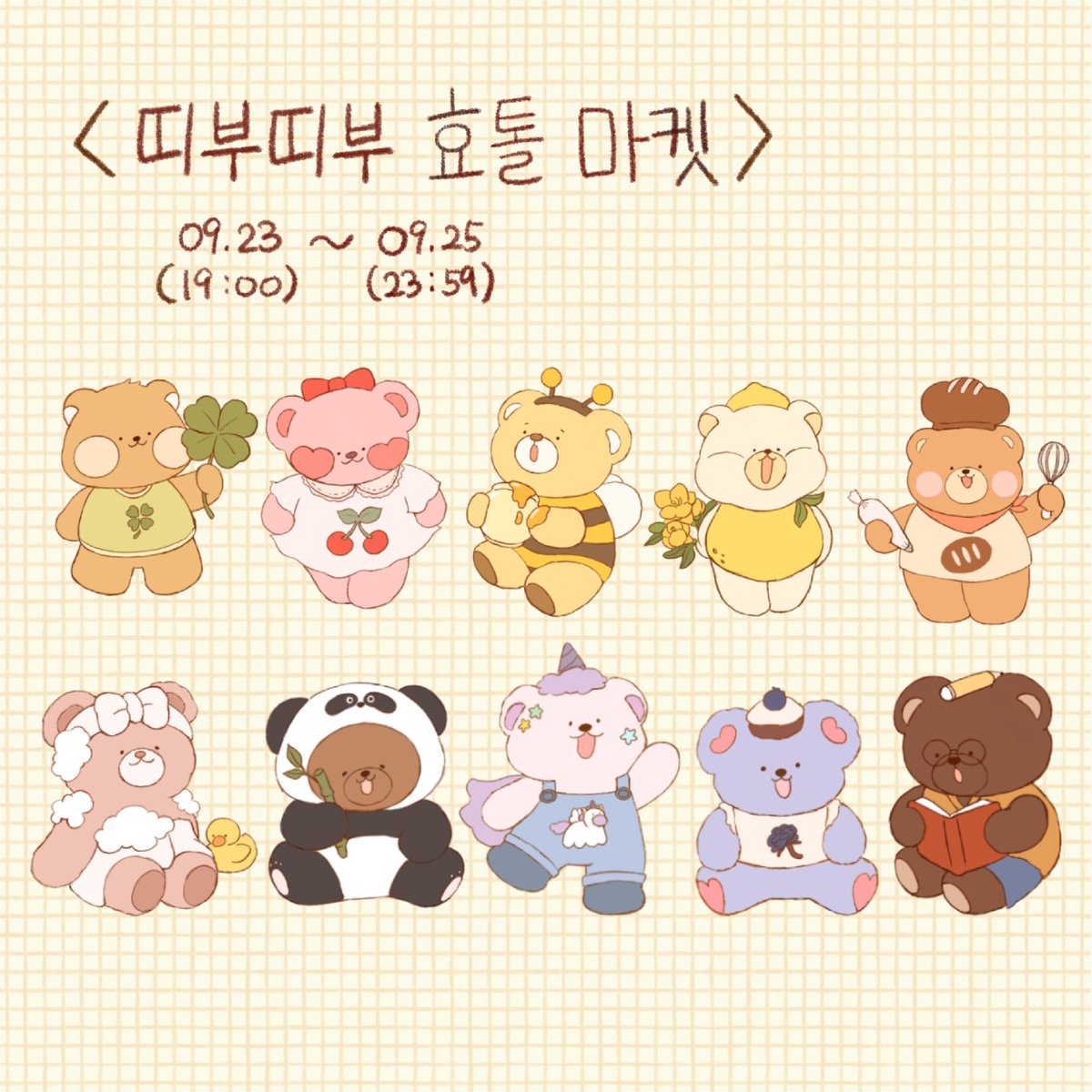 띠부띠부씰 통판을 9월 23일부터 25일까지 진행합니다. 오늘 저녁 7시부터 아래 링크를 통해 구매해주시면 됩니다!!🐻❤️ form.twenty.style/v1/Hyoddun_s/1…