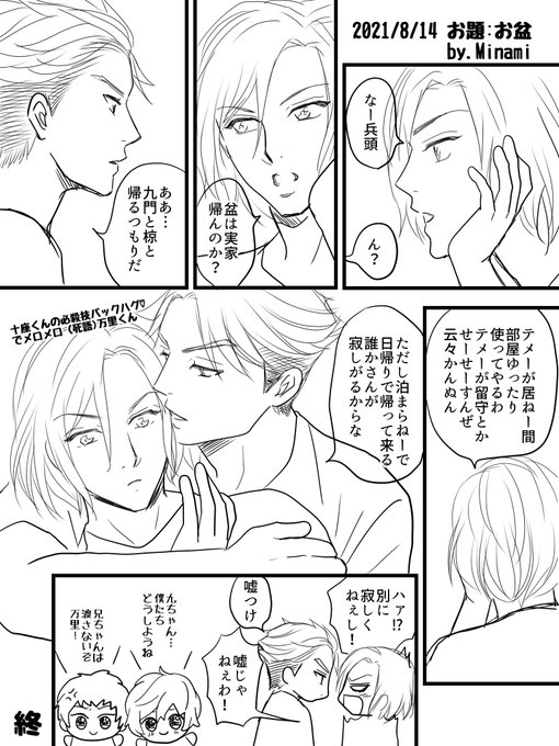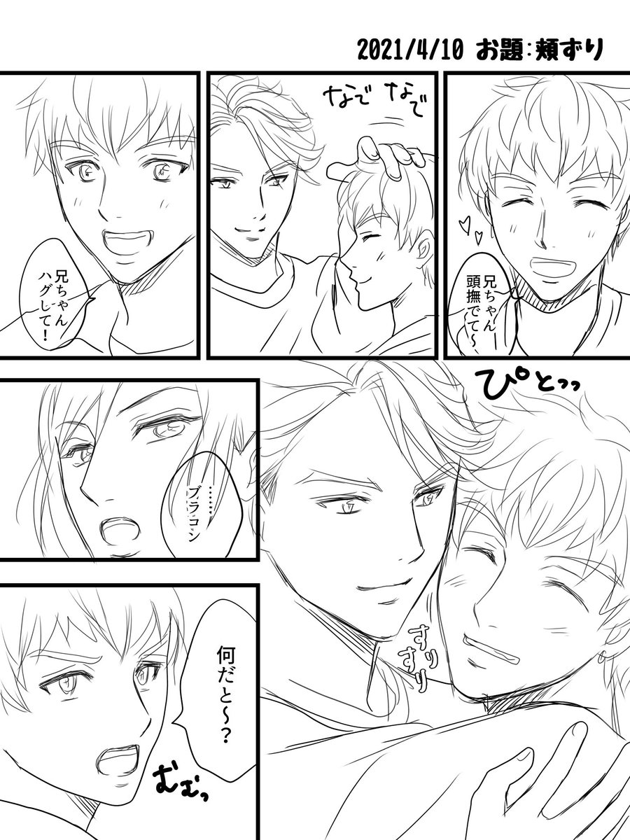盛大に日付を間違えていたので上げ直します💦 大遅刻すみません🙇♂️🙇♀️ 4/10兵摂ワンドロお題「頬ずり」です。 無自覚十座と、意識しちゃう万里 #兵摂版深夜のワンドロ一本勝負 @hyose__60