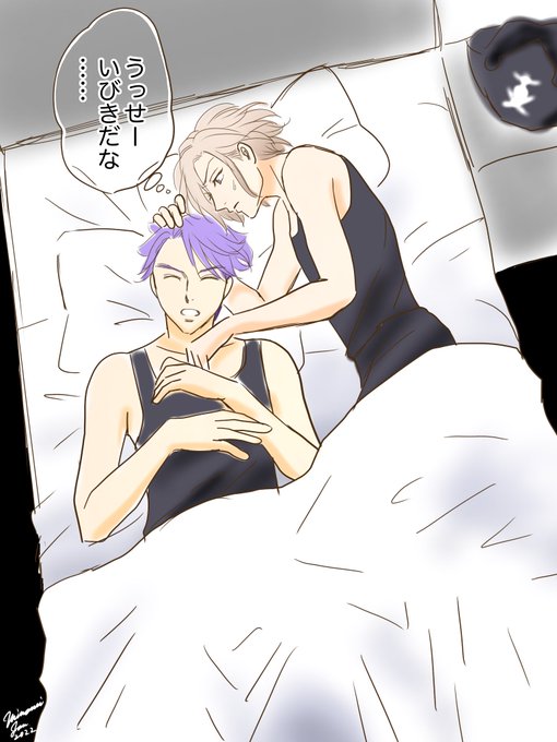超遅刻ですが参加させていただきます。 お題:ティグダグ エピソード衝撃すぎましたね… という訳で、副船長のいびきに悩まされながらも添い寝する船長です。 (全然ふたりっぽさが出てなくてすみません…) #兵摂版深夜のワンドロ一本勝負 @hyose__60