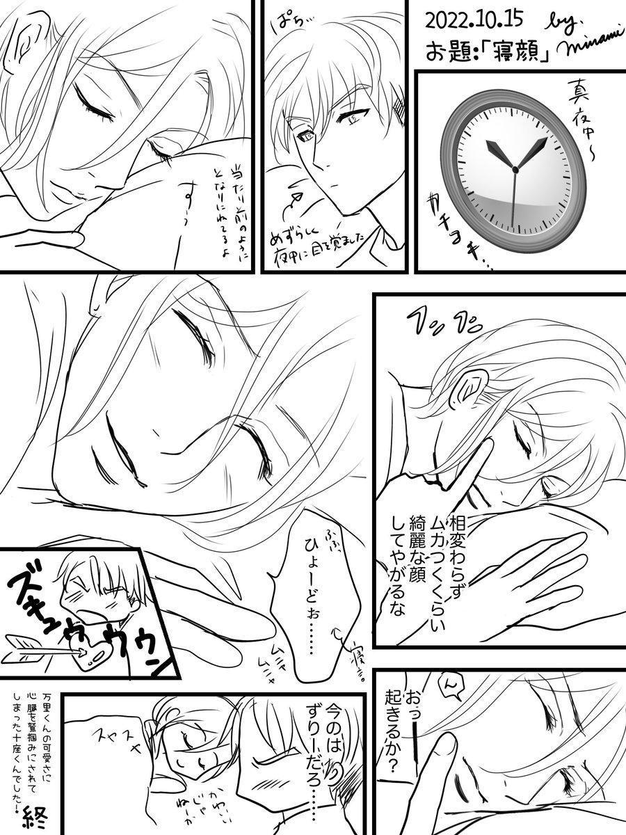 本日もワンドロ開催ありがとうございます。 お題:「寝顔」 いつも十座くんに振り回される万里くんばかりかいているので、たまには逆のパターンを #兵摂版深夜のワンドロ一本勝負 @hyose__60
