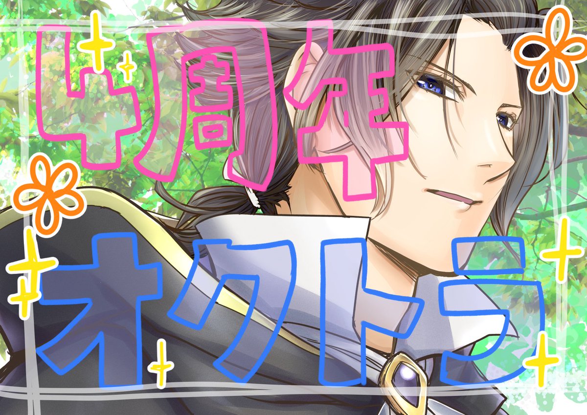 パソコンが壊れて新しい環境が手になじまなくていっぱいいっぱいの中でとにかく最推しを祝いたいという根性で描きました。シンプルな絵ですが愛は込めてます。 4周年おめでとう! #Octopath4thAnniversary