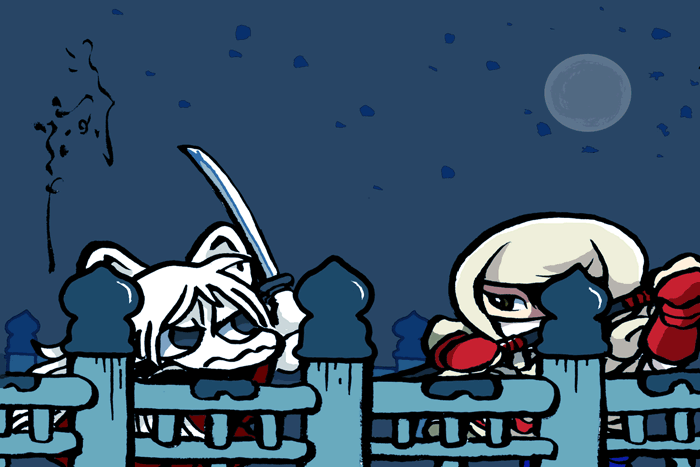 #牛若小太郎 火曜日なのでコーンジョ描きました。小太郎と橋の上で決闘