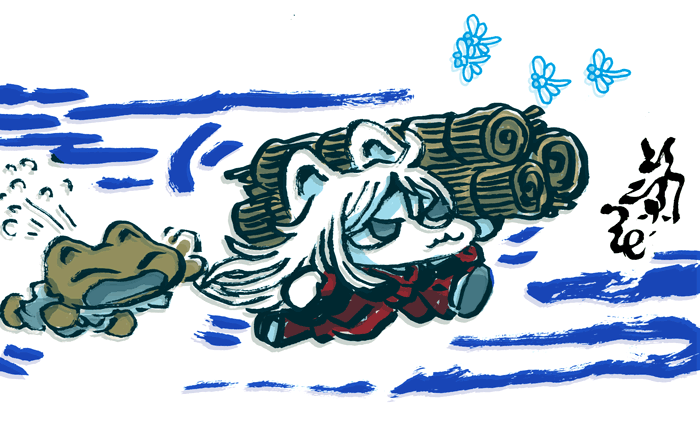 14 20 #牛若小太郎 火曜日なのでコーンジョ描きました。小太郎と橋の上で決闘 23/07/11 13:39