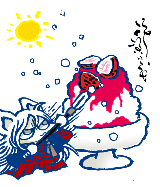 #牛若小太郎 火曜日なのでコーンジョ描きました。氷いちご。