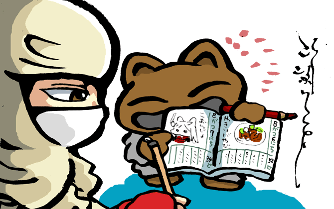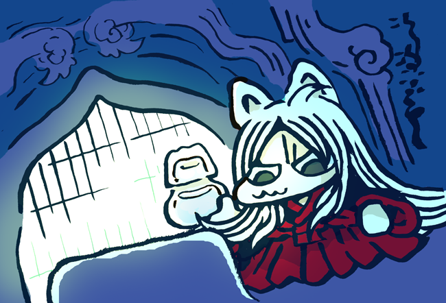 #牛若小太郎 昨日描けなかったのでコーンジョ描きました。葭簀をウラギラから強奪するコーンジョ。
