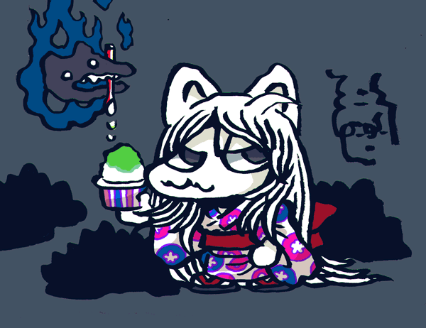 #牛若小太郎 火曜日なのでコーンジョ描きました。浴衣でかきごおり買ったコーンジョ。