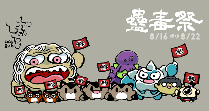 31 77 妖怪についておしえてくれる瓶詰妖怪に敬礼をする週間に突入したので、アイコンに蠱毒大佐の一ッ目蝸牛をへんぽんとひるがえし中です。 #蠱毒大佐 #蠱毒祭 #蠱毒祭2023 23/08/16 08:51
