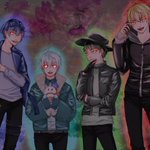 一人の構図が浮かばない人間なので、つい人数増やしてしまう これと対になるようにオジングも描きたいんだけど誰にするか悩みますね…… オジングはスーツで描きたいので対照的にレザージャケットイメージで描きました #あるまぁーと #狂人たろアート #見るかもわからん #ふじみやまで届け