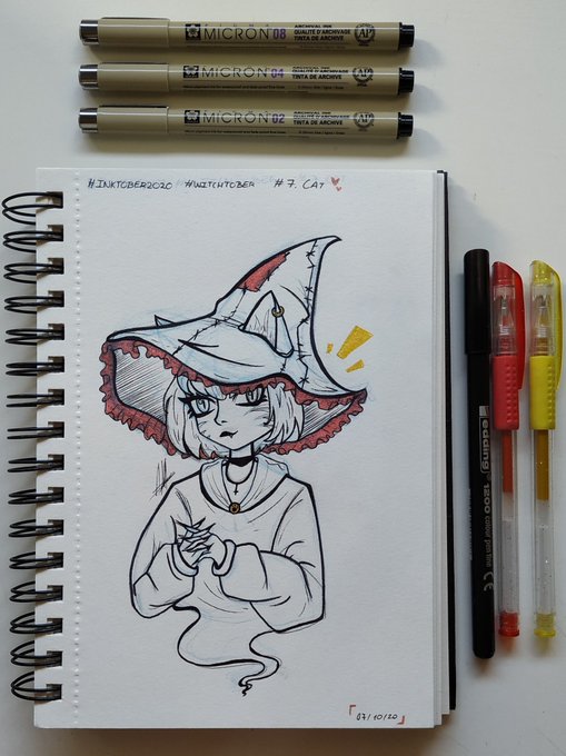 🙀 [7.Cat/Gato] 🙀 • • • Instagram: instagram.com/hyukiee_ilu?ig… #inktober2020 #witchtober2020 #day7 #cat #gato #witch