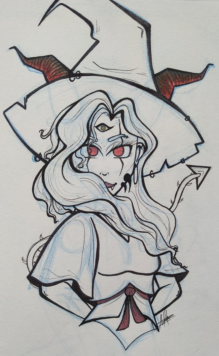🤘[22.Horns/Cuernos]🤘 • • • Instagram: instagram.com/hyukiee_ilu?ig… #inktober2020 #witchtober2020 #day22 #horns #cuernos #witch