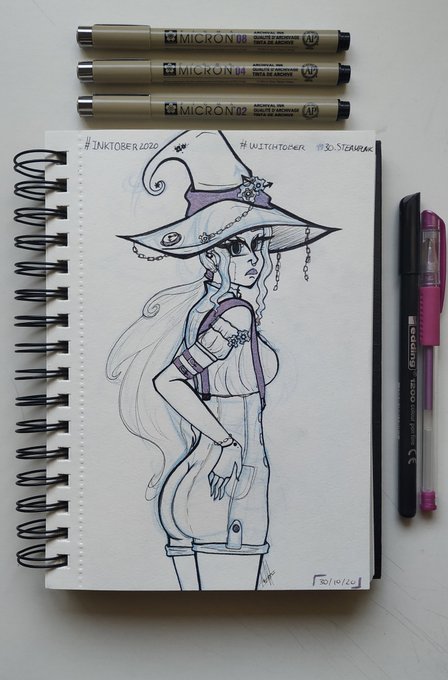 ⚙️[30.Steampunk]⚙️ • • • Instagram: instagram.com/hyukiee_ilu?ig… #inktober2020 #witchtober2020 #day30 #steampunk #witch
