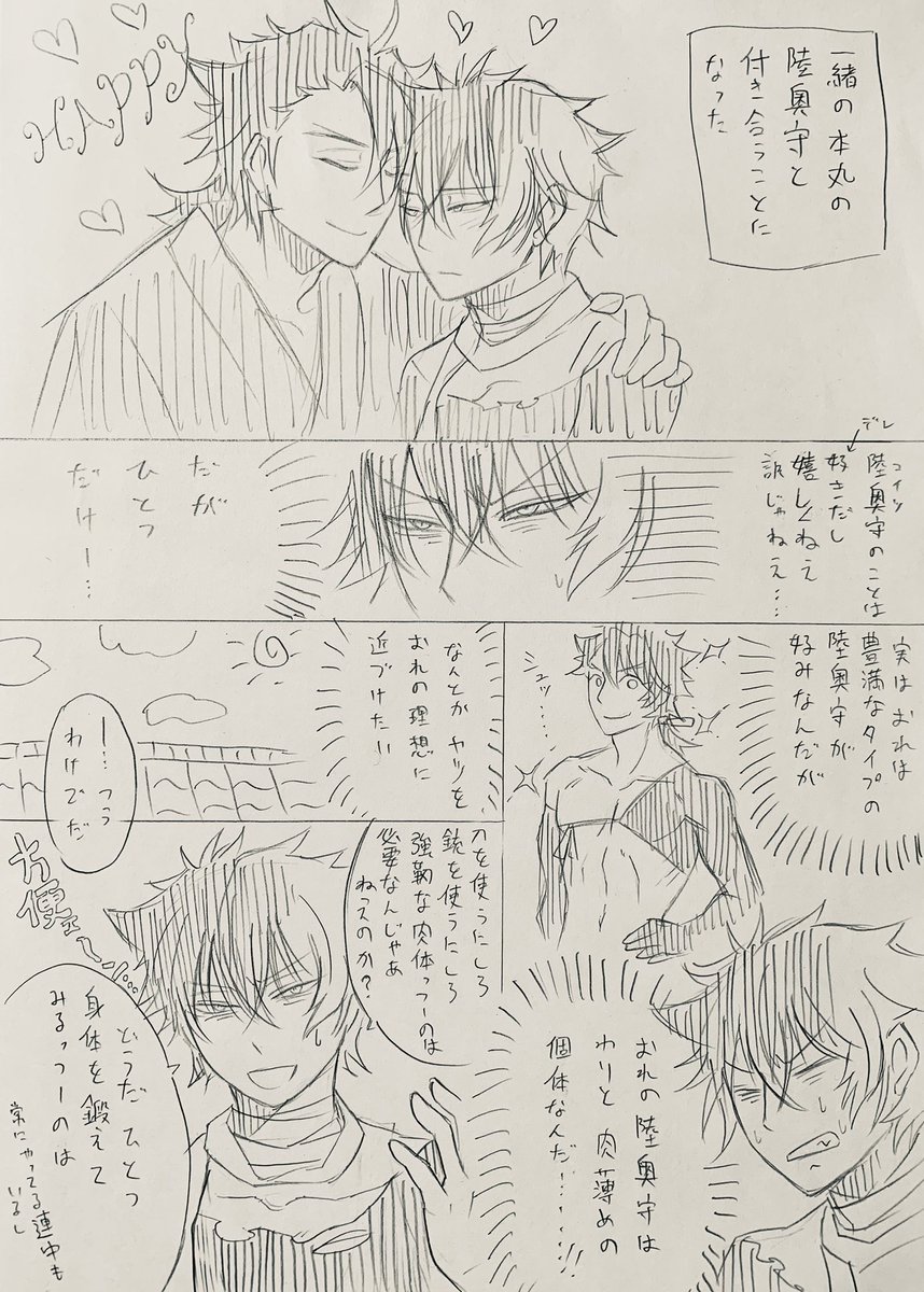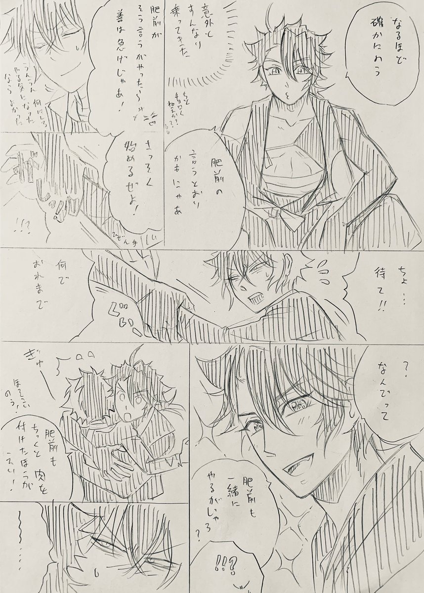 ななつさん(@mugi0katana)、うまさんのむつひぜデート御本『君ト歩ケヨ三千世界!』に寄稿した漫画をしぶに再録しております🎉 素敵な御本に参加させていただきありがとうございました☺️ pixiv.net/artworks/10489…
