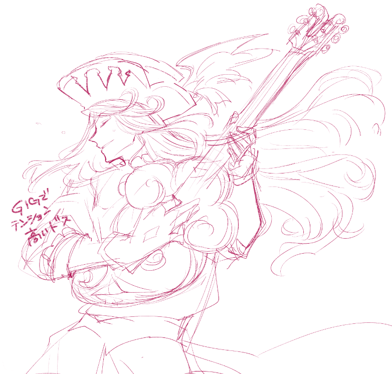 アオイドスの髪の毛描きたくて落書きをし始めるけど最終的にそのほかの装飾が面倒になって落書きで終わった4枚