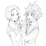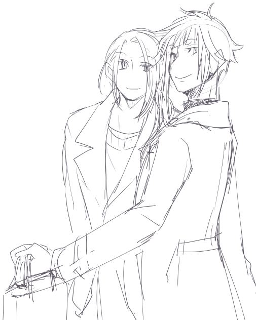 エルモートとボスコさんの(「ボスコさん多分元ネタに聖人の方が入ってるからアーソンで宗教画っぽくしてもいいのでは!?」と「それより普通に仲良くしてて欲しい」が合わさって事故った)らくがき