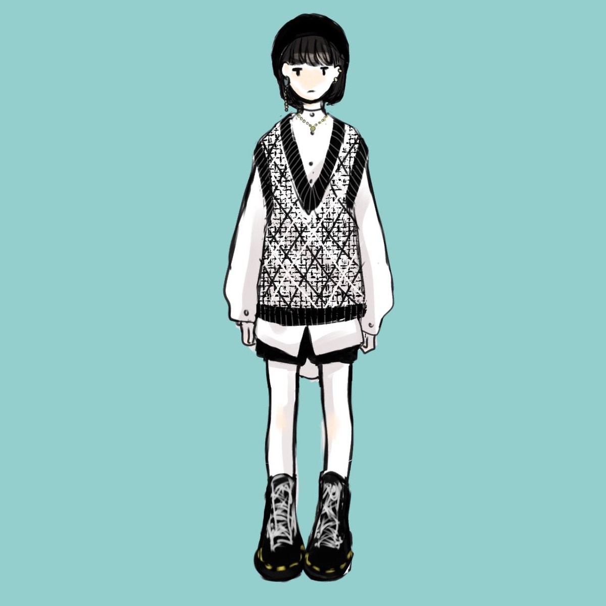 5 18 黒髪にしたので合うベストを買ってしまったのです… かわいい… もう服は増やさない✊ #絵描きさんと繋がりたい 21/10/10 07:06
