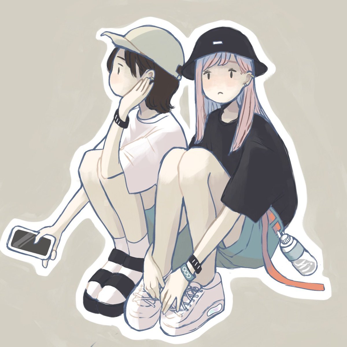 最近の子のファッションかわいい 左の系統特に好きだけど、田舎じゃなかなか見れない… アームカバーよき #イラスト