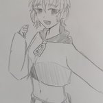 【イラスト練習】朝日と蛇使い 手癖。 実は肩に蛇がいます。ぐるぐるな瞳もかなり好き #イラスト練習 #イラスト
