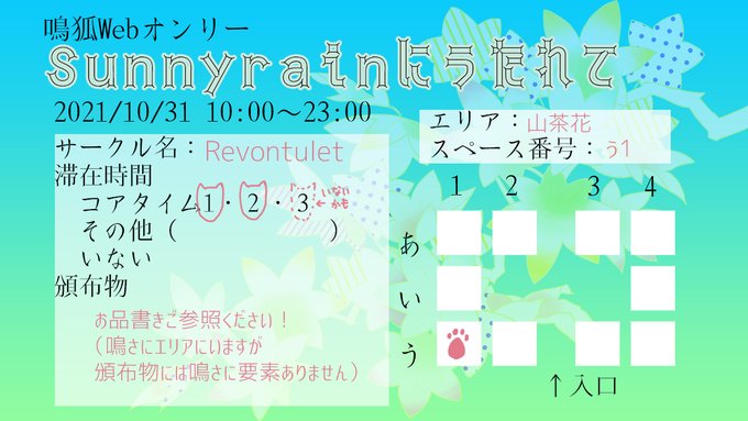 サクカ登録しました〜! 10/31(日) 鳴狐webオンリー 「Sunnyrainにうたれて」に参加します🦊 イベント初参加なので至らない点もあるかと思いますが、頑張りますのでどうぞよろしくお願いします!🙇♀️ #Sunnyrainにうたれて