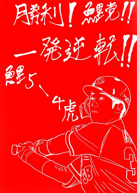 こいほー!🎏 ・宇草、打った瞬間のサヨナラホームラン! ・坂倉、同点に追いつくホームラン ・先発メンバーピッチャー以外全安打! ・松本が頑張った! ・曽根の貴重な打席 ☆阪神ファンの気持ちもわかるが、會澤をあまり酷く叩かないでください。 #こいほー #carp #カープ #プロ野球 #イラスト