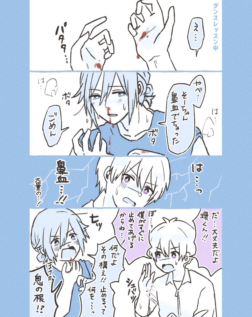 ⚠️鼻血注意 至って冷静だった🍀︎と 本人よりパニクって 首をとんとんしようとする🌱 (※首とんとんしちゃいけません)