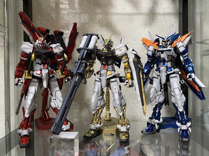 年末から赤、青、金の順でアストレイを制作。 やっちまいました…🐸🍦 ゴールドの左太もものデカールが逆さま…😖😖😖 これを機に老眼鏡を買って来ました…😭 #ガンプラ好きと繋がりたい #ガンプラ