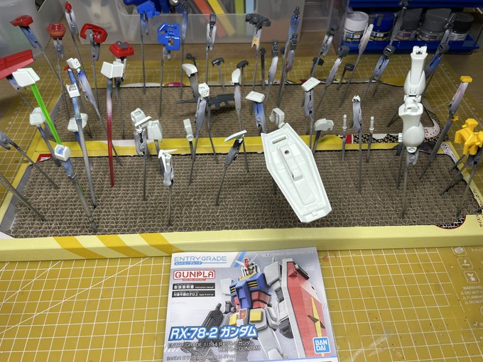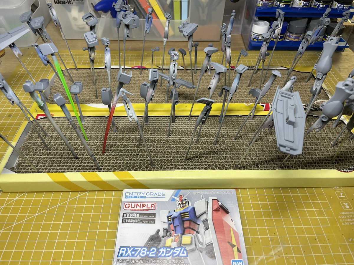 今更ですが、初心に帰ってエントリーグレード初挑戦。😅 しっかり塗り重ねる予定なので、プライマー後のサフ吹き。 40年前との違いに感慨深いものを感じますなぁ😊 #ガンプラ #ガンプラ好きと繋がりたい #ガンダム