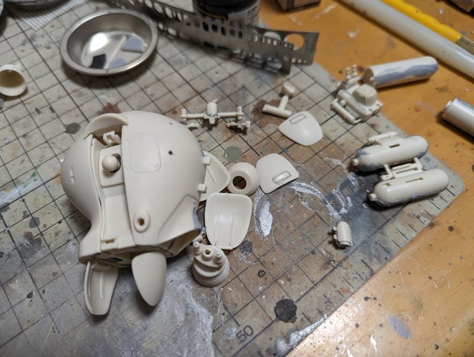 カウツの部品の接着が終わりました。明日パテを削ってサフ吹きに行きたいです #マシーネン #SF3D