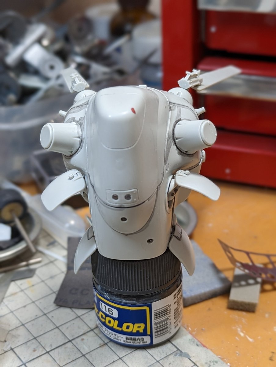 1 4 プラウラーの組立がほぼ終わりました。背中の配線穴を処理すれば塗装に入れます #マシーネン 22/12/15 07:01