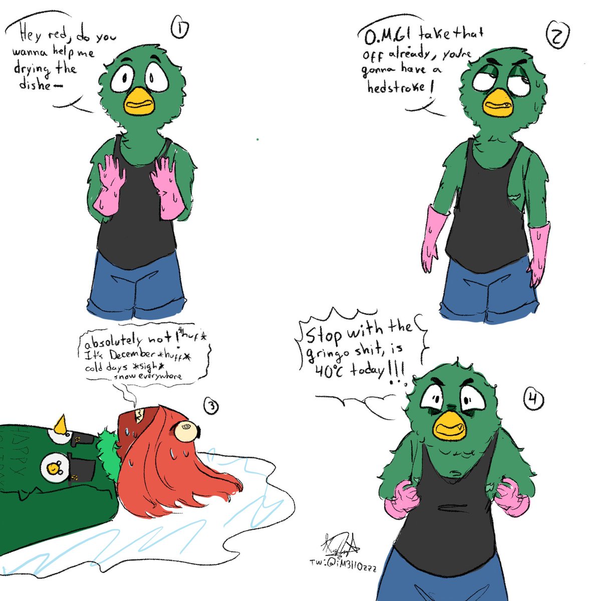 Is even gayer cuz they share the t-shirt (duck steals it from red) #dhmis #dhmiafanart #fluffybird