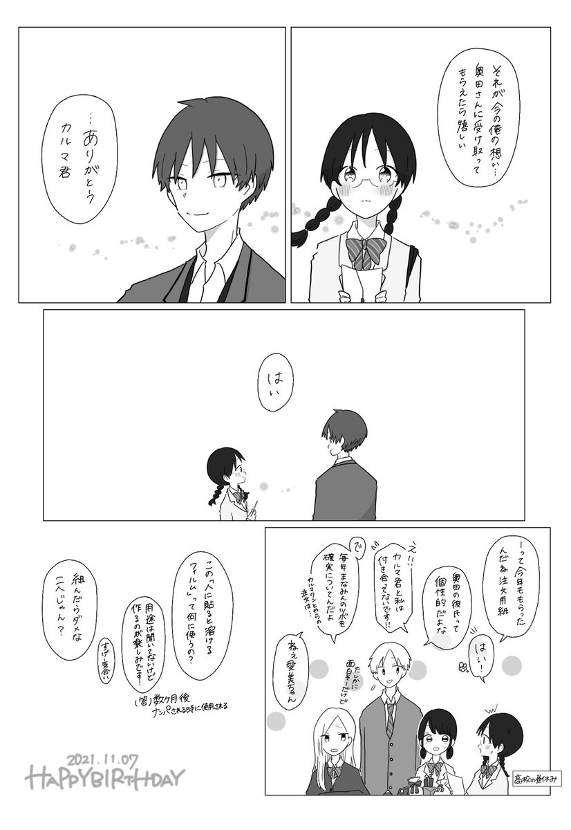 22 167 奥田さんお誕生日おめでとうございます!!大好きです!!(奥田さんの高校の同級生にも二人組ませたらヤバい認識であってほしいっていうカル愛) 21/11/07 00:00