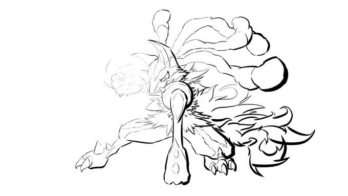 1 13 #イラスト ポケモン絵、メガルカリオです 線だけでの光の表現を勉強中です 墨入れはまた後日 22/06/01 19:44
