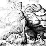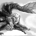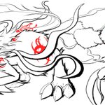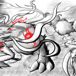 #イラスト 墨絵風で、モンスターハンターよりメル・ゼナです。 モノクロに差し色で一色だけ入れるのは有りかもしれません。