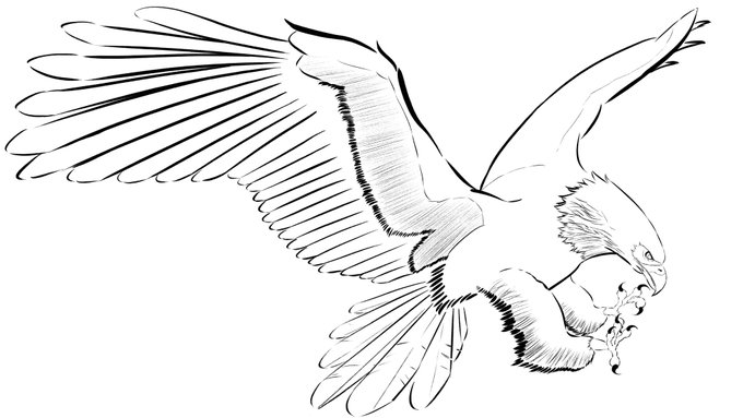 0 2 #イラスト まだ線だけですが上げておきます。 ハクトウワシです。アメリカの国鳥だそうで。 しかし塗ってないと頭の白色が判らない、、、 22/06/22 19:15