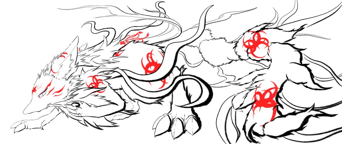 0 3 #イラスト 前回の狐に朱色入れてみました これだけでも妖怪っぽさが増して良いですね 22/06/14 19:34
